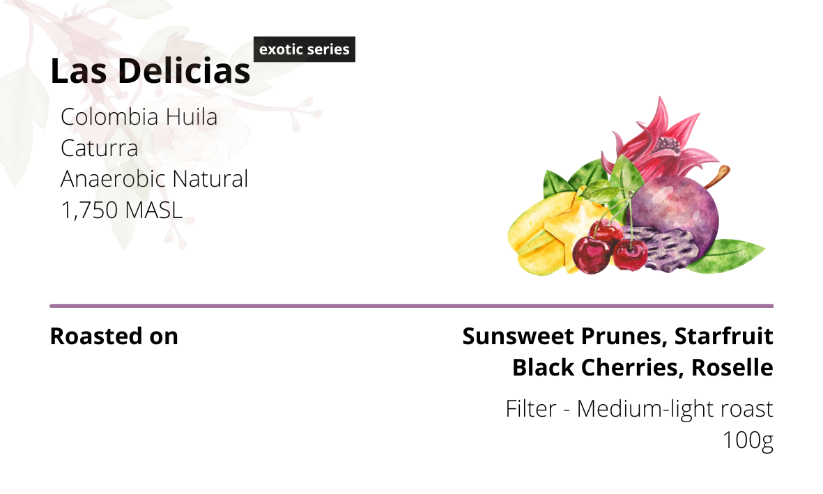 Roaster Comments: Enjoy grape-like coffee, with distinct sunsweet prunes acidity and sweetness with this Las Delicias